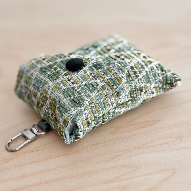 Keep your pocket tissues clean, organized and on hand. Perfect for adding onto your keys, in your purse or in the car. Handcrafted with recycled materials. Features a snap closure, leather tab with swivel clip and is fully lined. Includes one package of mini travel tissues.