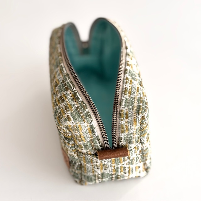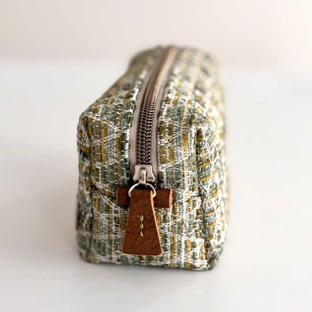 Made with recycled materials. Zipper pull and pull tabs are made with leather.